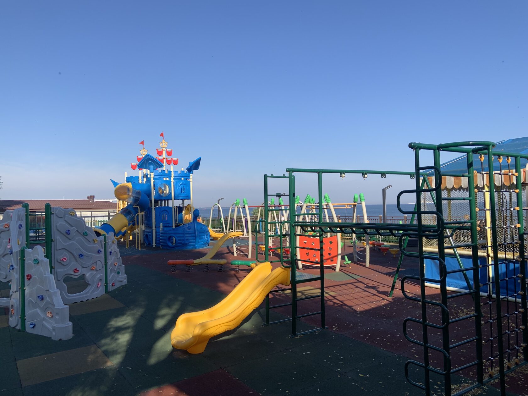 Рядом большая детская площадка с целым комплексом развлечений для маленьких гостей города. Тут и горки, лазалки, батуты, качели, всего и не перечислишь. Магазин сладостей расположился прямо у входа.