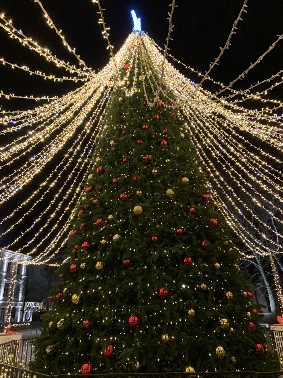 Новогодняя ночь на городской площади Зеленоградска.