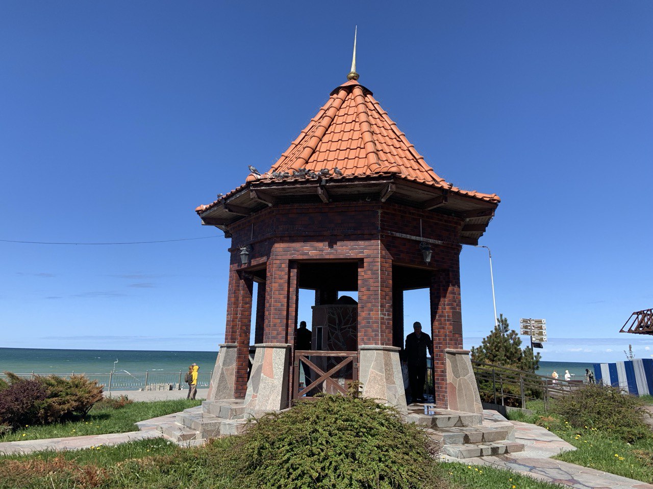 Перед пирсом стоит Бювет королевы Луизы, в котором вы можете попробовать зеленоградскую минеральную воду. Не забудьте только взять с собой пластиковый стаканчик, в который можно будет ее налить.