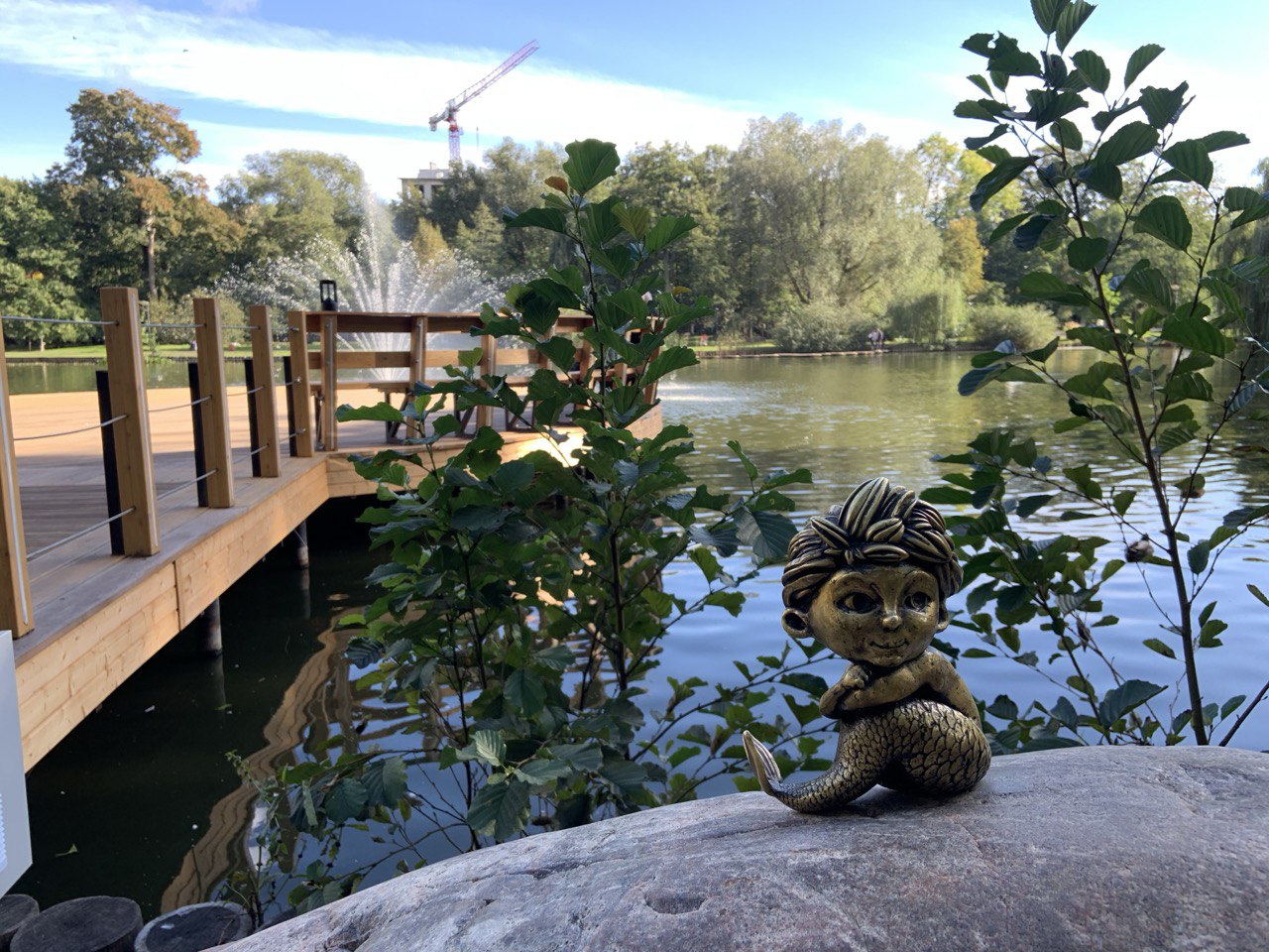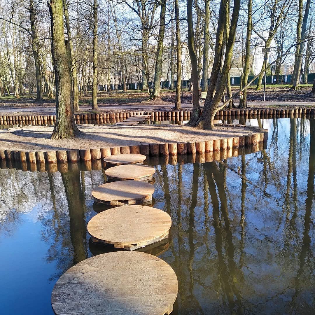 Пройдите вокруг озера, поугадывайте названия грибов, которые расставлены вдоль дорожки, сфотографируйтесь на мосту вздохов и найдите, где можно пробежать прямо по озеру и не замочить ноги.
