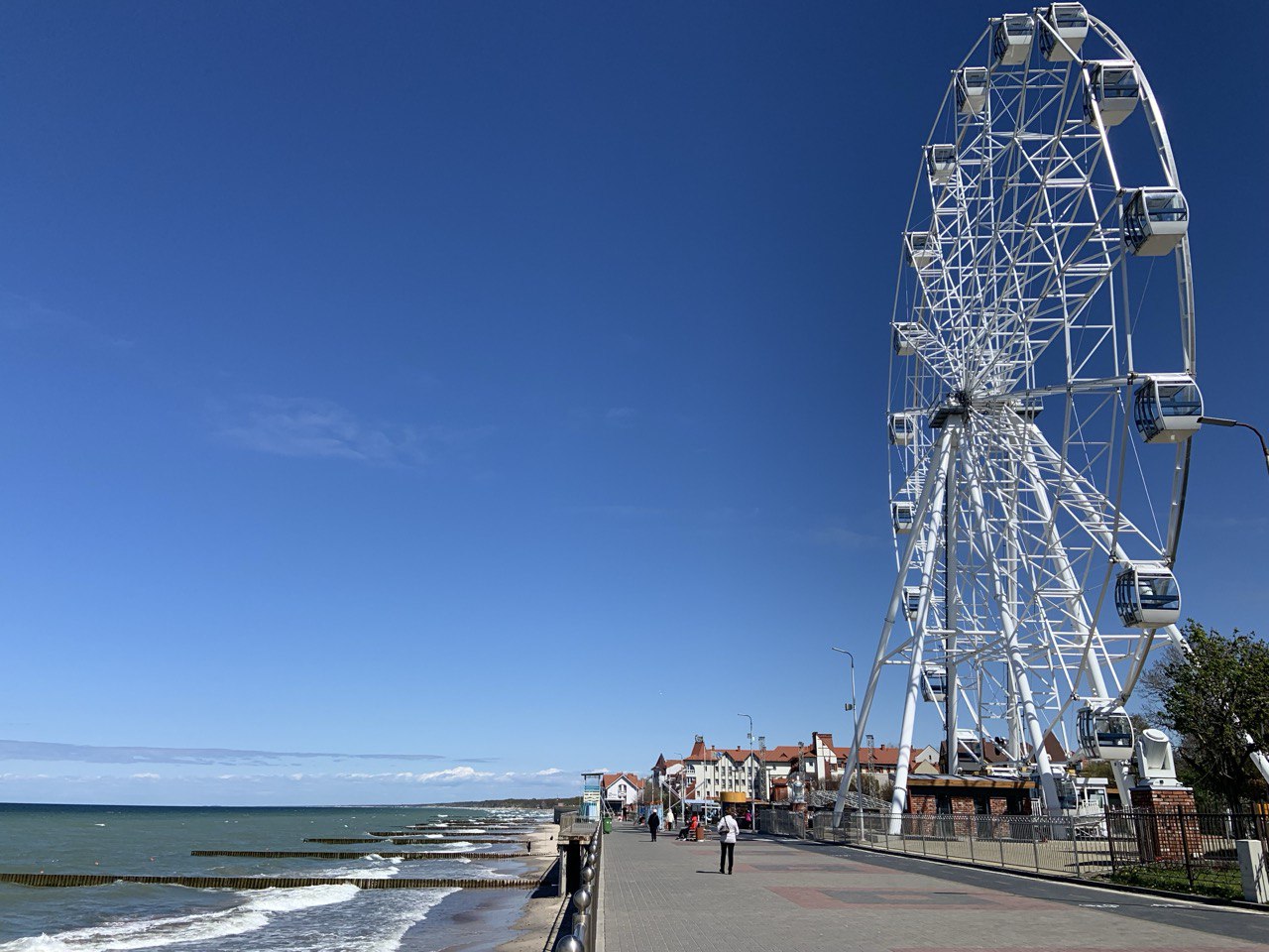 Ну и последней точкой прогулки может стать «Колесо обозрения». Можно сделать круг и посмотреть с высоты на город и побережье. Оцените сами: большой или маленький по вашим меркам наш Зеленоградск.