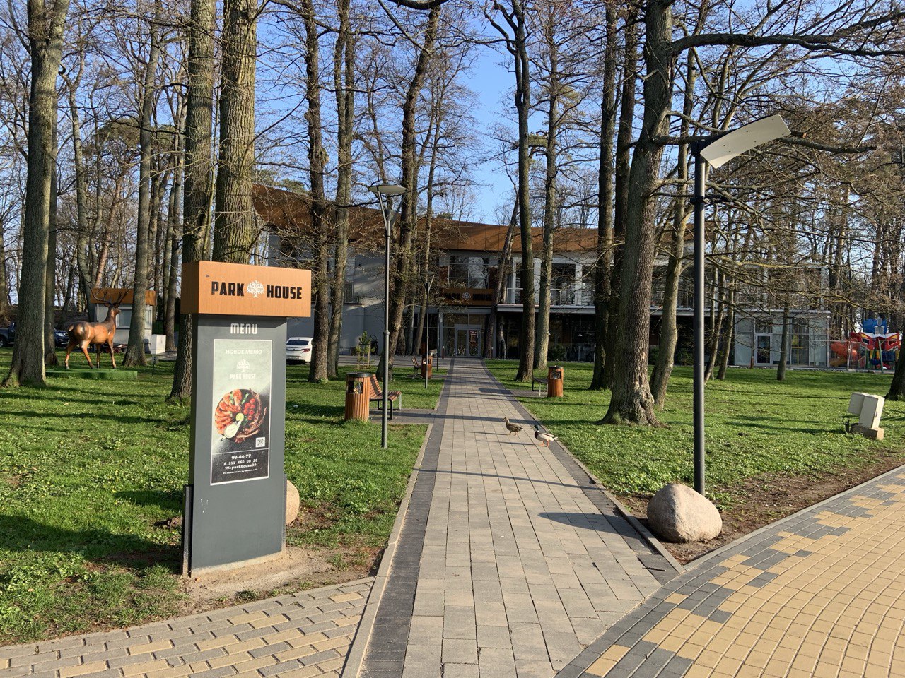 В парке есть кафе «Парк-хаус», куда можно зайти перекусить, у них внутри тоже есть детская площадка с лабиринтом.