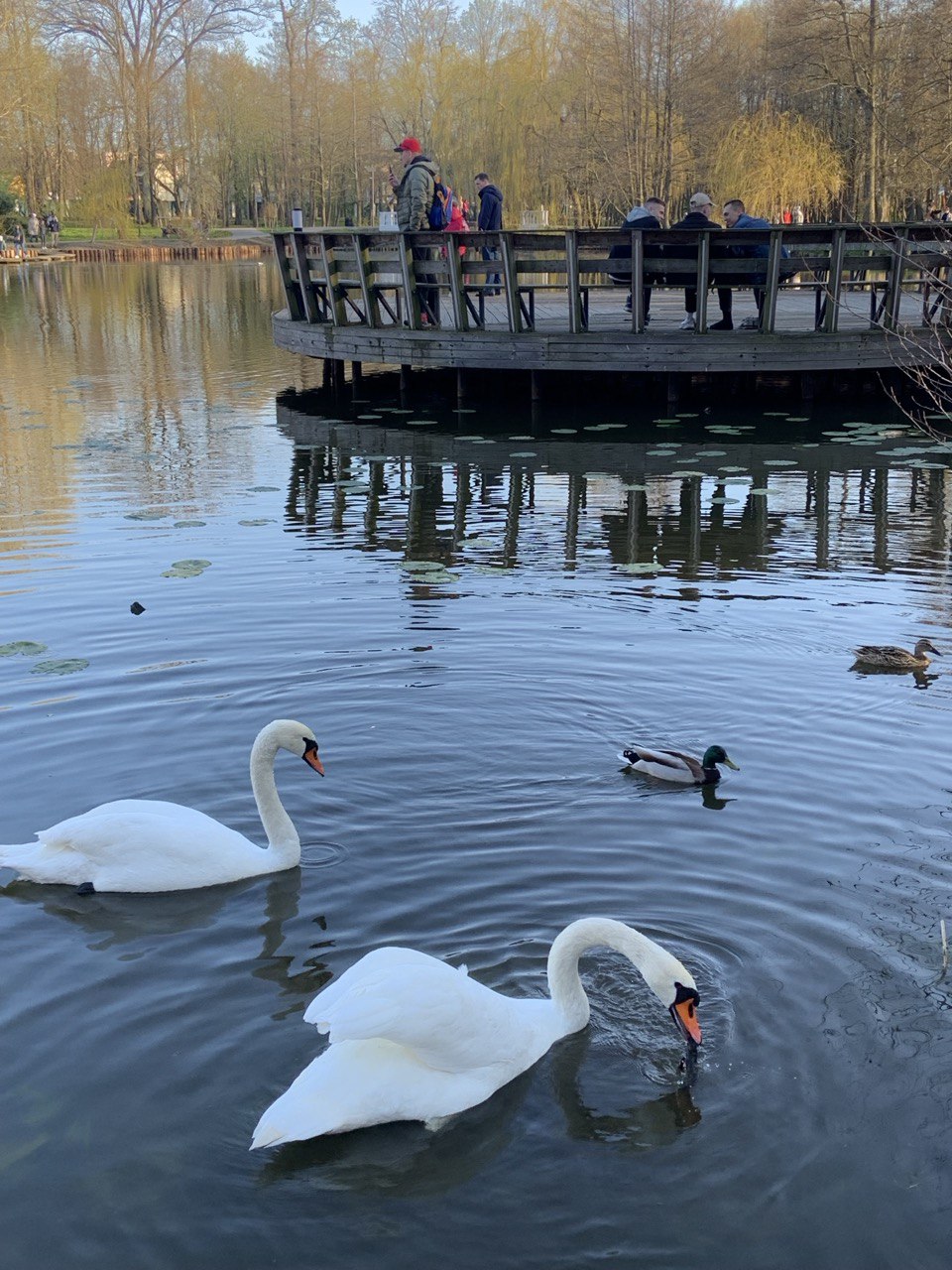 Красивое озеро с величественными лебедями и множеством уток и чаек, которые полюбили плавать под склонившими свои головы плакучими ивами. Летом в парке множество цветущих роз. Осенью мы собираем каштаны и желуди для творчества, которые в огромных количествах валяются под ногами.