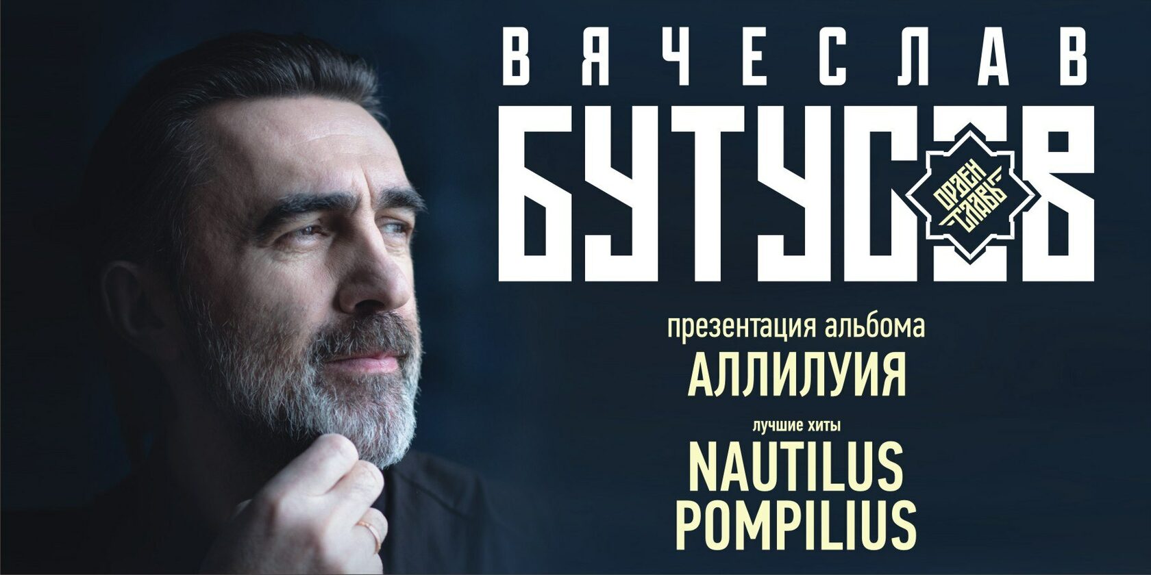 Вячеслав Бутусов со своей группой Орден Славы представят на концерте удивительную историю целого поколения в сценическом оформлении под самые любимые и узнаваемые песни в свежих аранжировках. Зрителей ждет поразительная, гипнотическая сценография, атмосферный видеоряд, конечно, любимые песни в современной авторской трактовке.